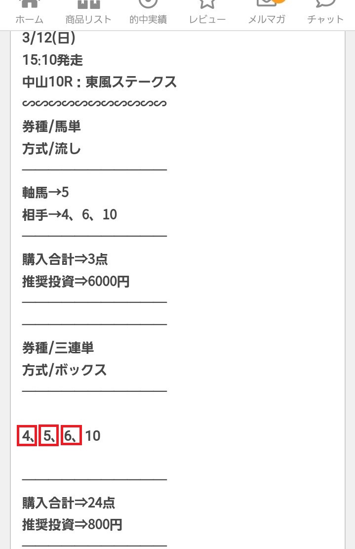 中山10R東風Sにて3連単的中