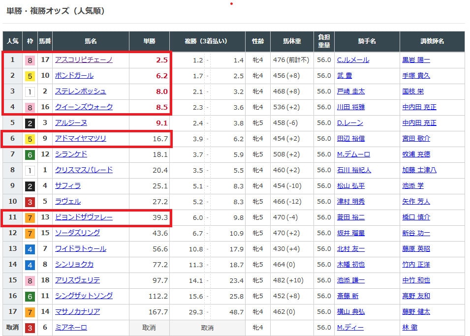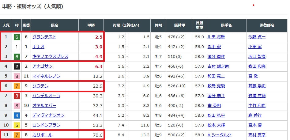 上位人気3頭とまさかのシンガリ人気!?