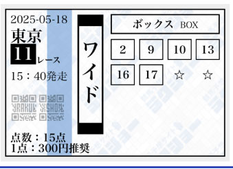 次の日の日曜日に公開されていた買い目がこちらになります。