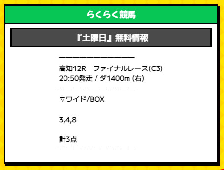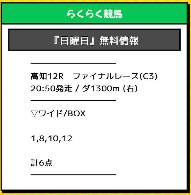 一発逆転ファイナルとして人気の高知の12Rの予想でした。