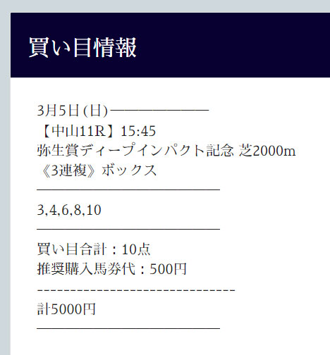 3/5(日)中山11R G2・弥生賞ディープ記念の予想買い目。