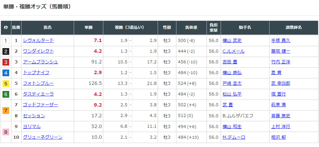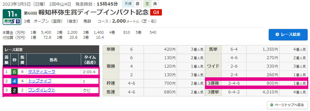 ⑥タスティエーラ、④トップナイフは買えていますが②ワンダイレクトが買い目に入っていませんでした。