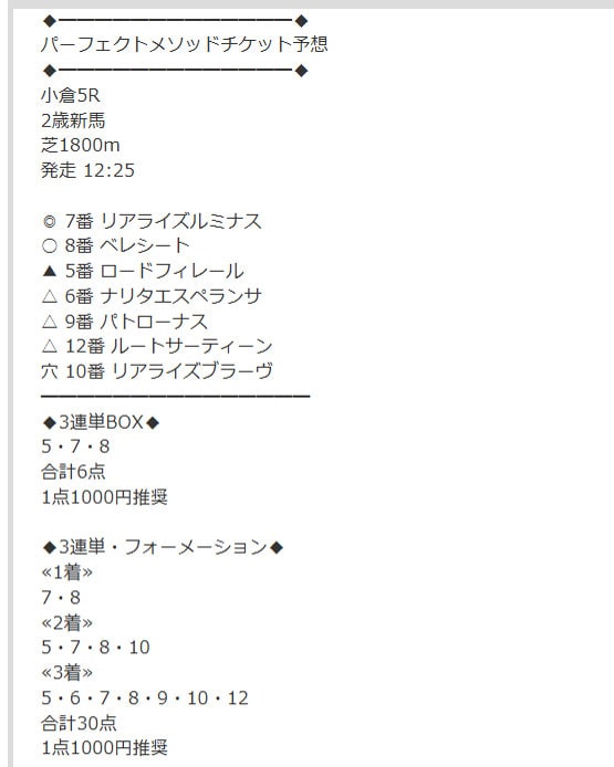 今回は、無料情報を見るたび10枚貰えるチケットを消費して閲覧することができる実質無料のチケット予想になります。
