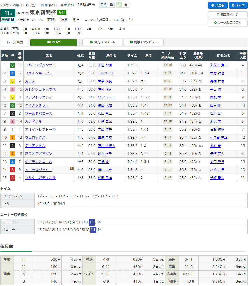 【検証レース:2/6 東京11R東京新聞杯(G3)】