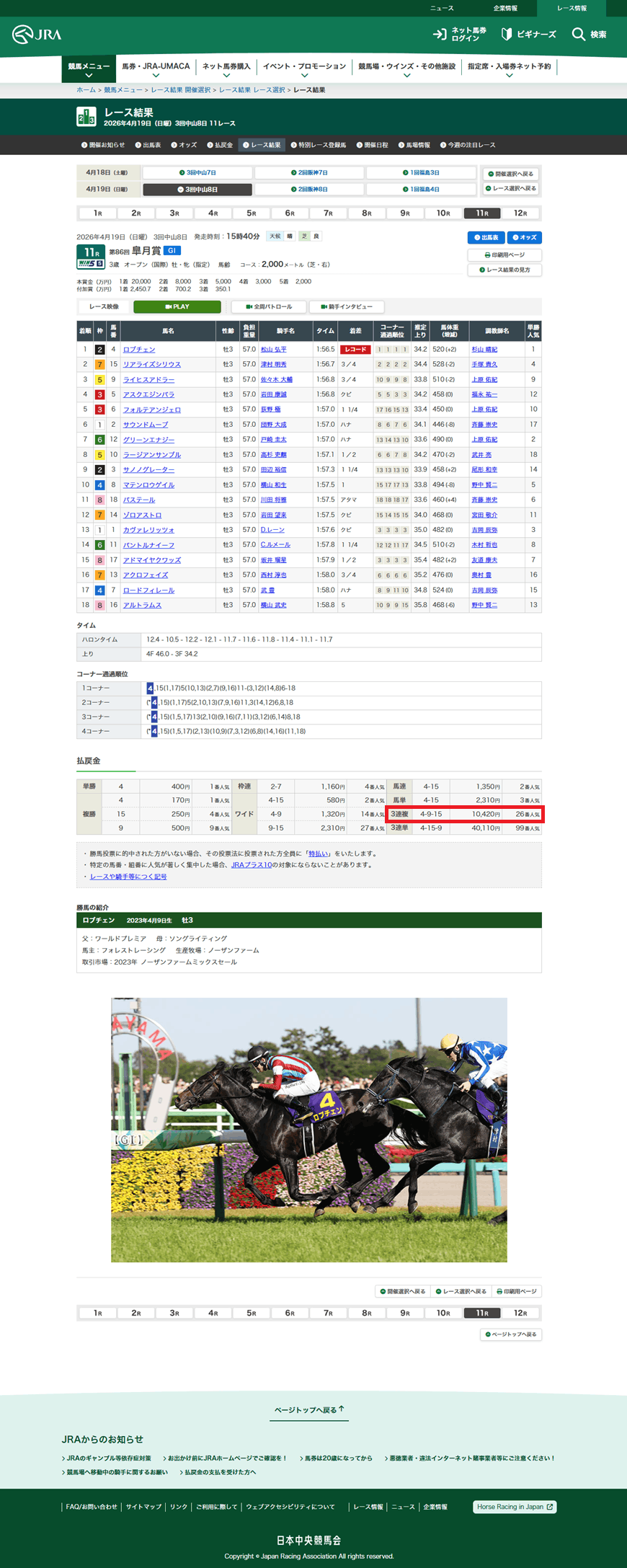 4月19日・中山11レース 皐月賞(GⅠ) 3歳オープン 芝2000m
