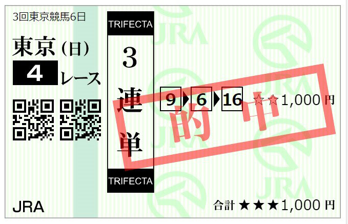 細かいことですが馬券のQRコードを読み込むと数列が出てくるはずなのですがなぜかここの画像のQRコードを読み込むとJRAのページに飛ばされてしまいました。
