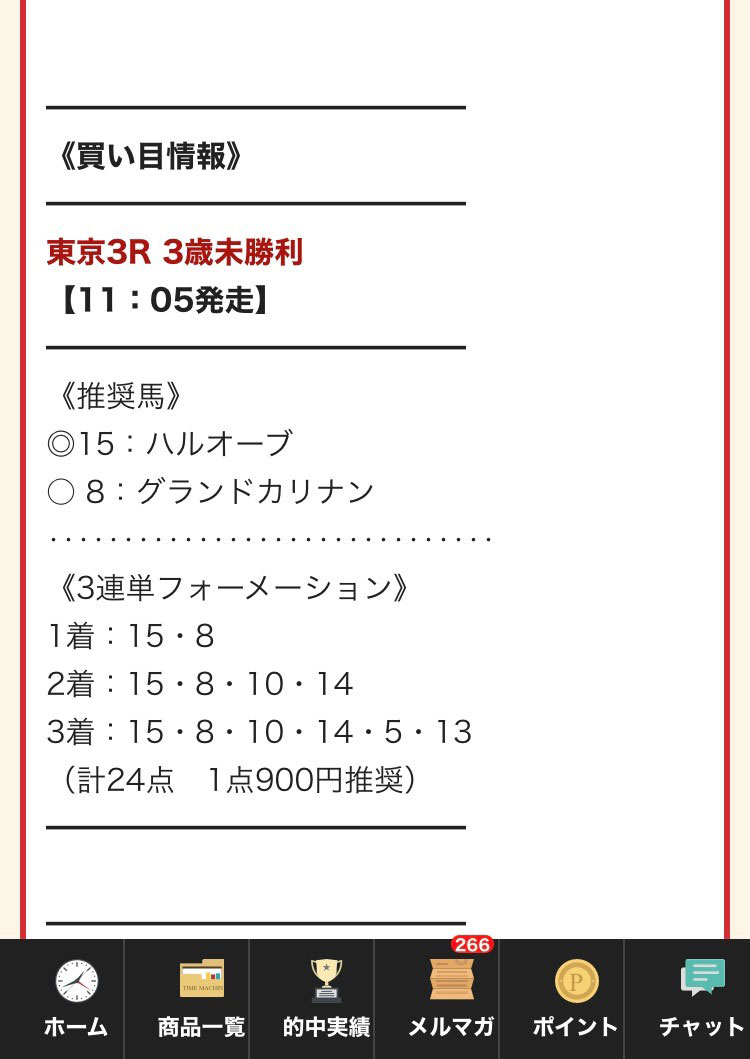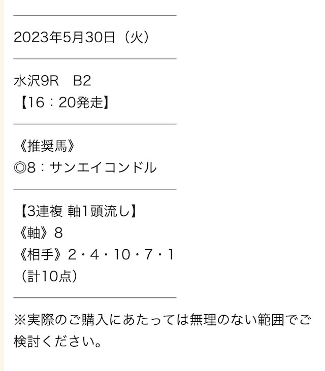 LINEで登録をして実際に公開された予想がこちらになります。