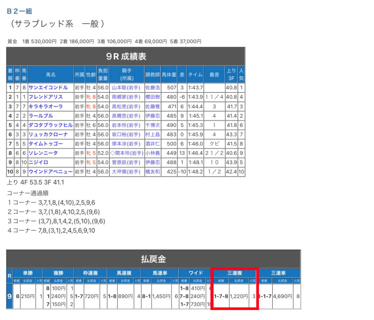 水沢競馬場の予想でした。