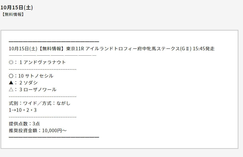 最少1点~最大でも5点までで提供しているそうで、どんな買い目を提供しているのかも気になるので実際に見て購入してみました。