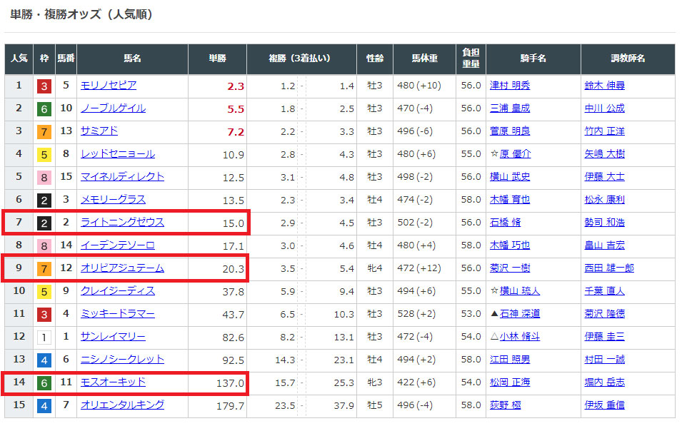 2~5番人気の比較的人気馬をごっそり切っているのが気になります。