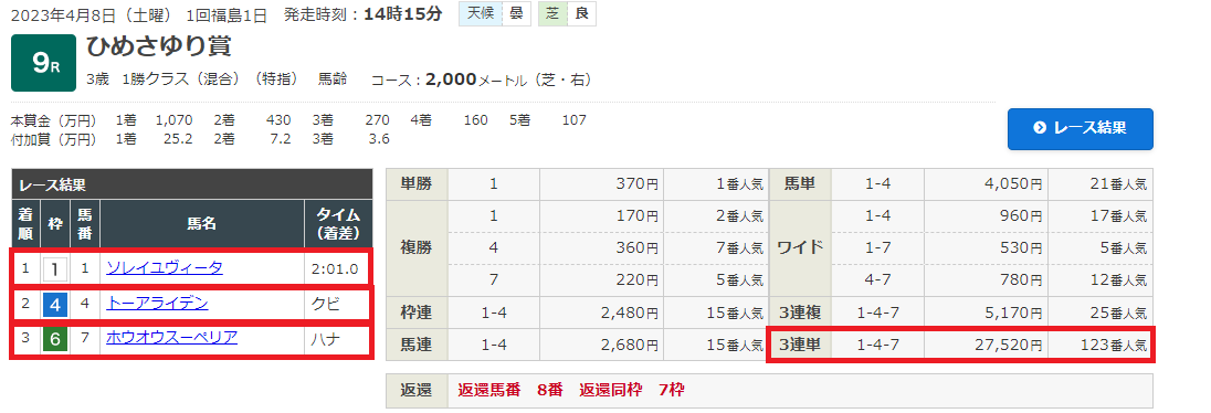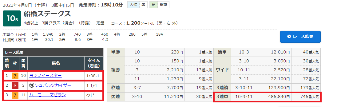4月8日・中山10レース 船橋ステークス 4歳以上3勝クラス 芝1200m