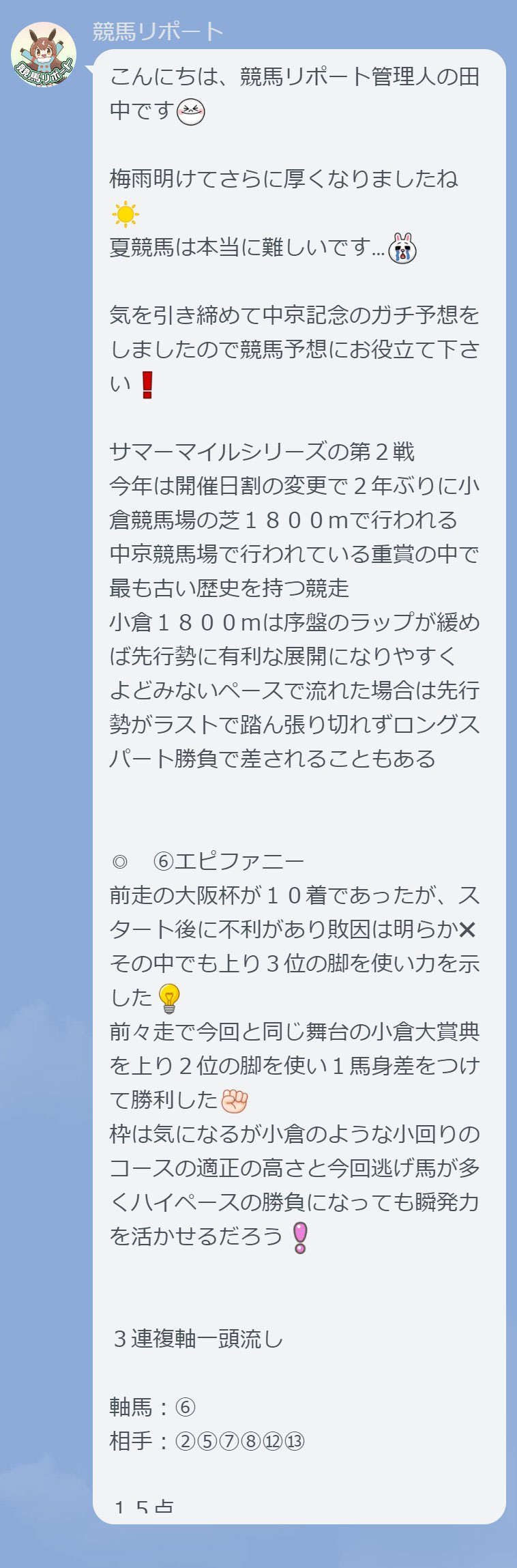 今週も頑張って日曜日の重賞の予想をしたいと思うのでぜひこちらから『競馬リポートの公式LINE』のご追加お願いいたします!