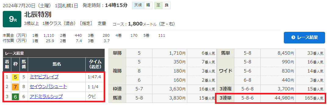 見事に人気の馬の⑤と⑧を切っていましたね…(笑)