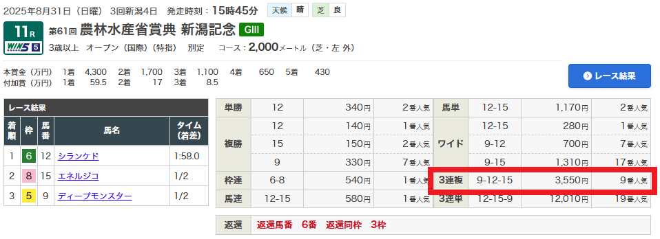 【無料情報】新潟記念(G3)完全勝利!
