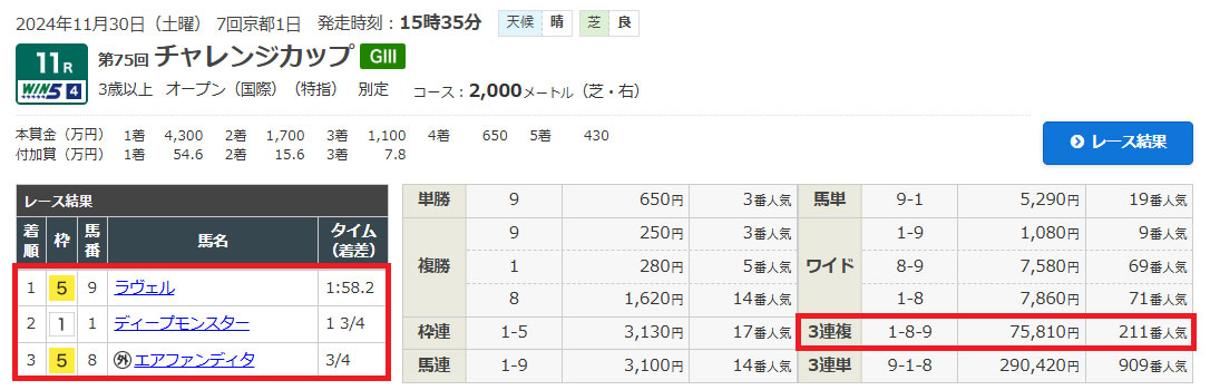 京都競馬場の11Rチャレンジカップ(G3)の予想になります。