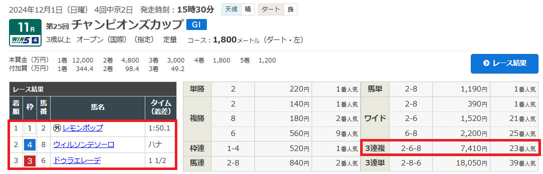 12月に入り最初の重賞のチャンピオンズC(G1)が終わりましたね。