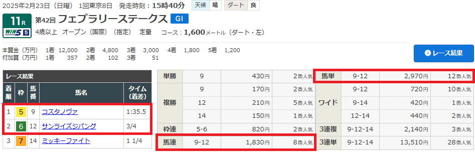 【無料情報】フェブラリーS(G1)的中!