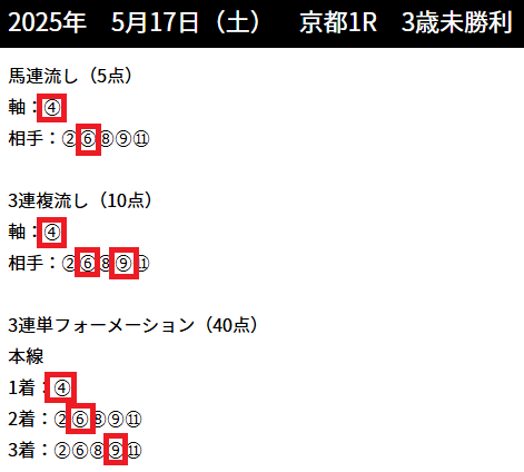先週の京都1Rの予想は、、、
