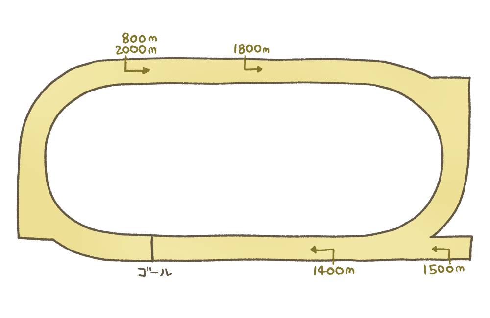 1周1200mで直線は230mと小回りで、勾配はなく平坦コースである。
