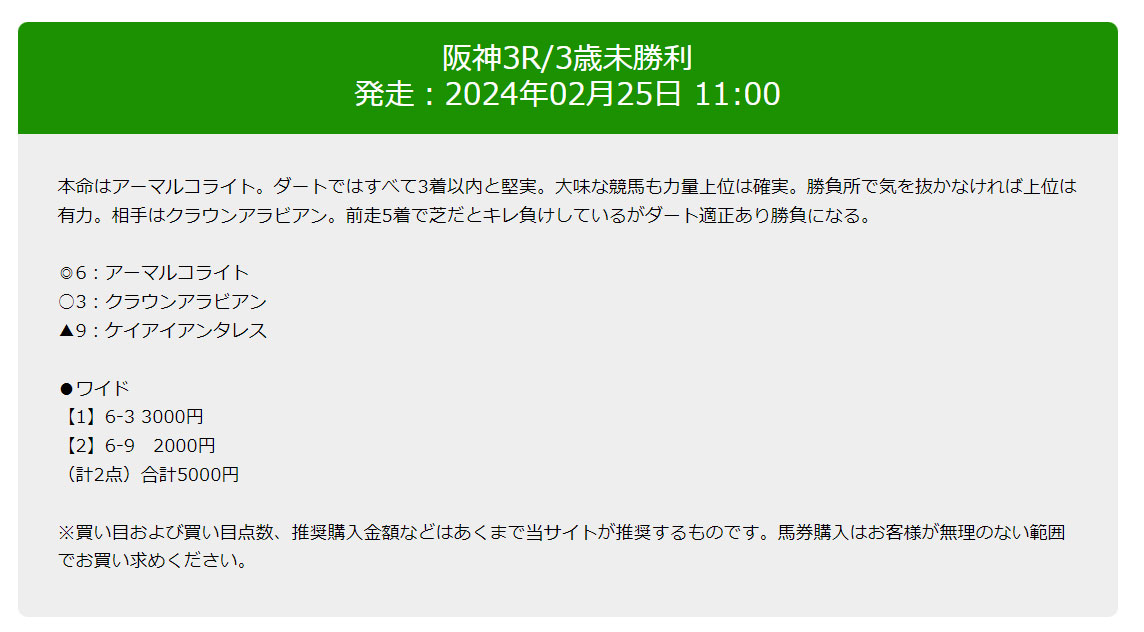 (とても細かいことですが3連複の予想なのに1頭目、2頭目、3頭目ではなく1着、2着、3着となっているのが気になりますね)