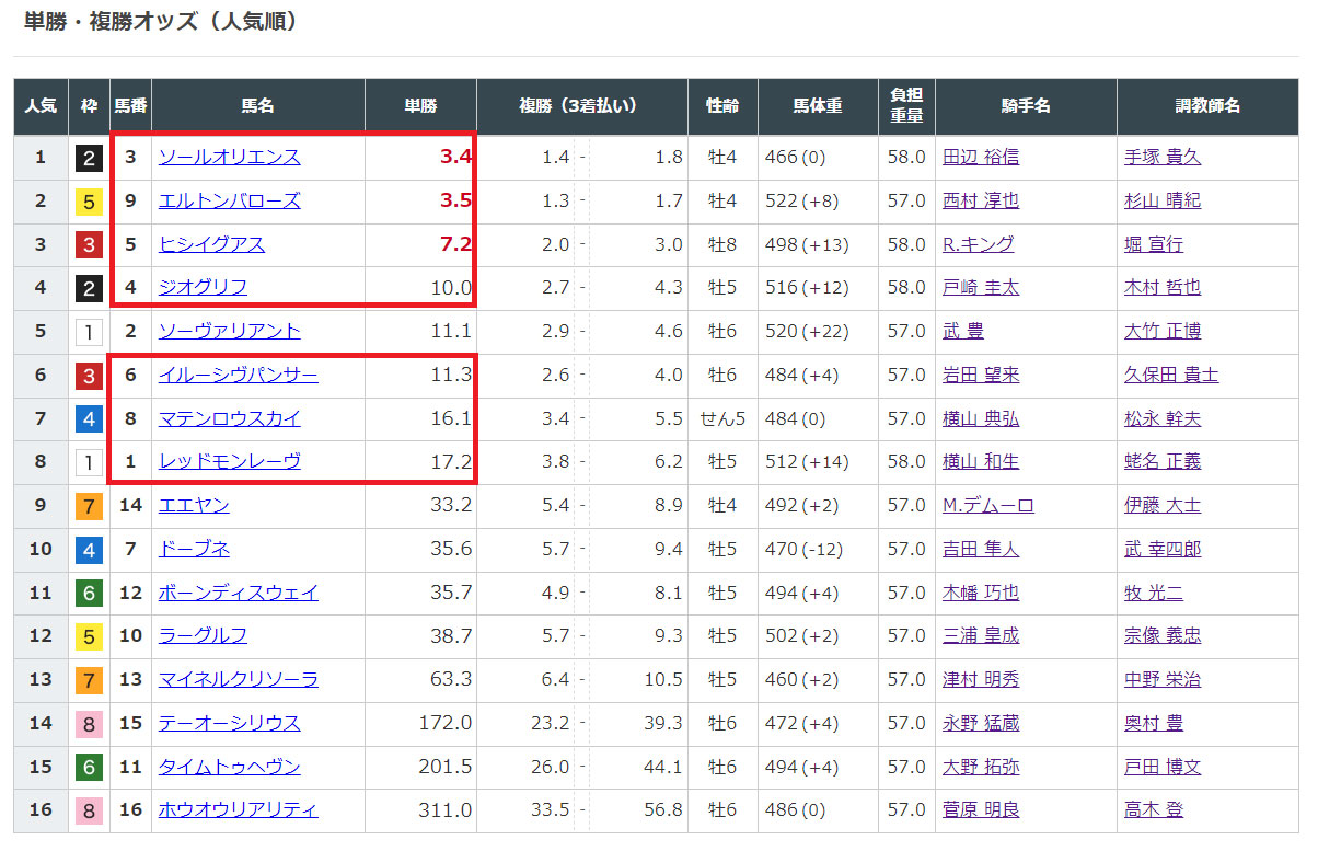 1番人気の③ソールオリエンスを頭にした予想です。