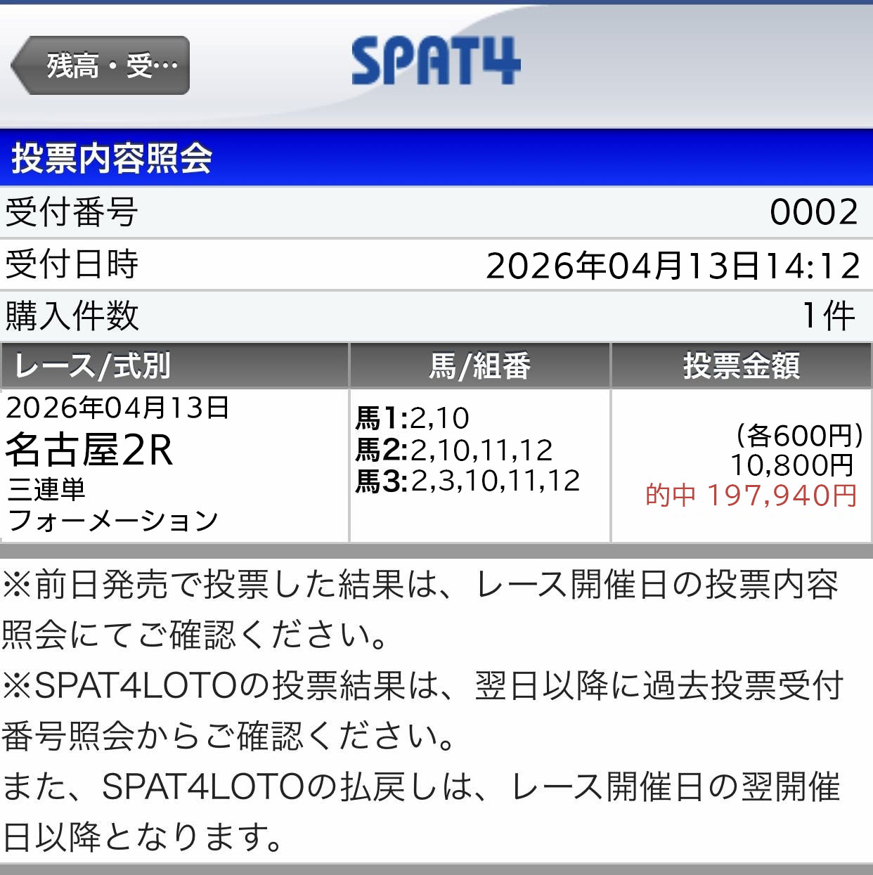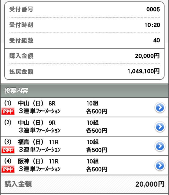 無料情報指定通り購入で爆勝ちw 今回も今回でありがとうでした、4月一発目も9万6700円的中貰えたしやばいっすねこのサイト!