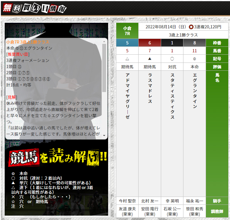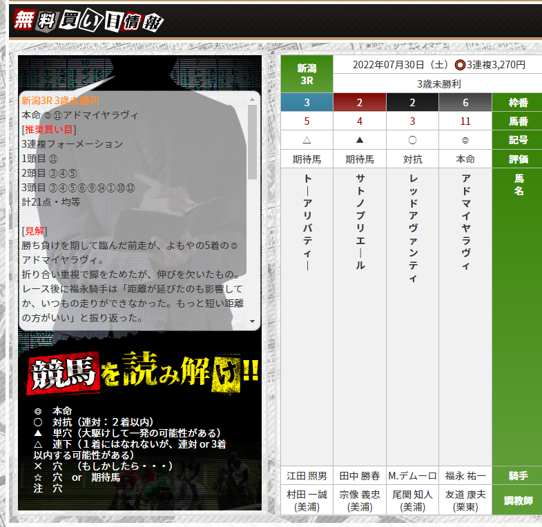 そういえば先週の土曜日の無料情報的中してたな!的中率まじでいいよな。 予想に対する見解も載ってて面白いし無料でここまでしてくれるのって珍しい気がするからいいサイトだなって思う。