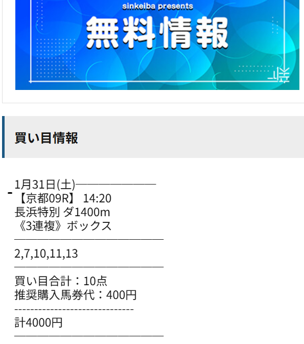 無料情報京都9レース3連複好配当的中貰えた!