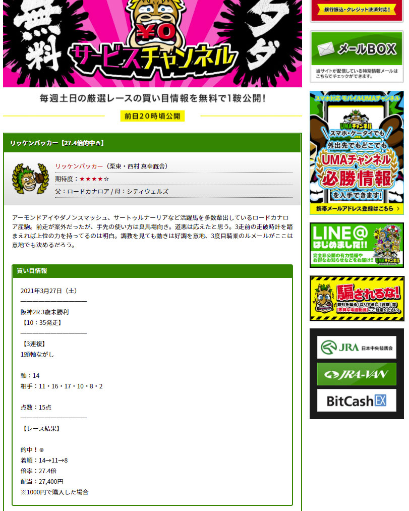 UMAチャンネルは2年前から使用しているけど変わらぬ的中率。 たまに時間ある時は地方競馬に参加して稼がせてもらってます。