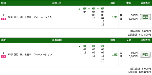 買い目を見た時にやけ2桁人気馬が入っているなと印象、下手したら不的中まで考えていたので想像を絶する的中額で衝撃的でした!